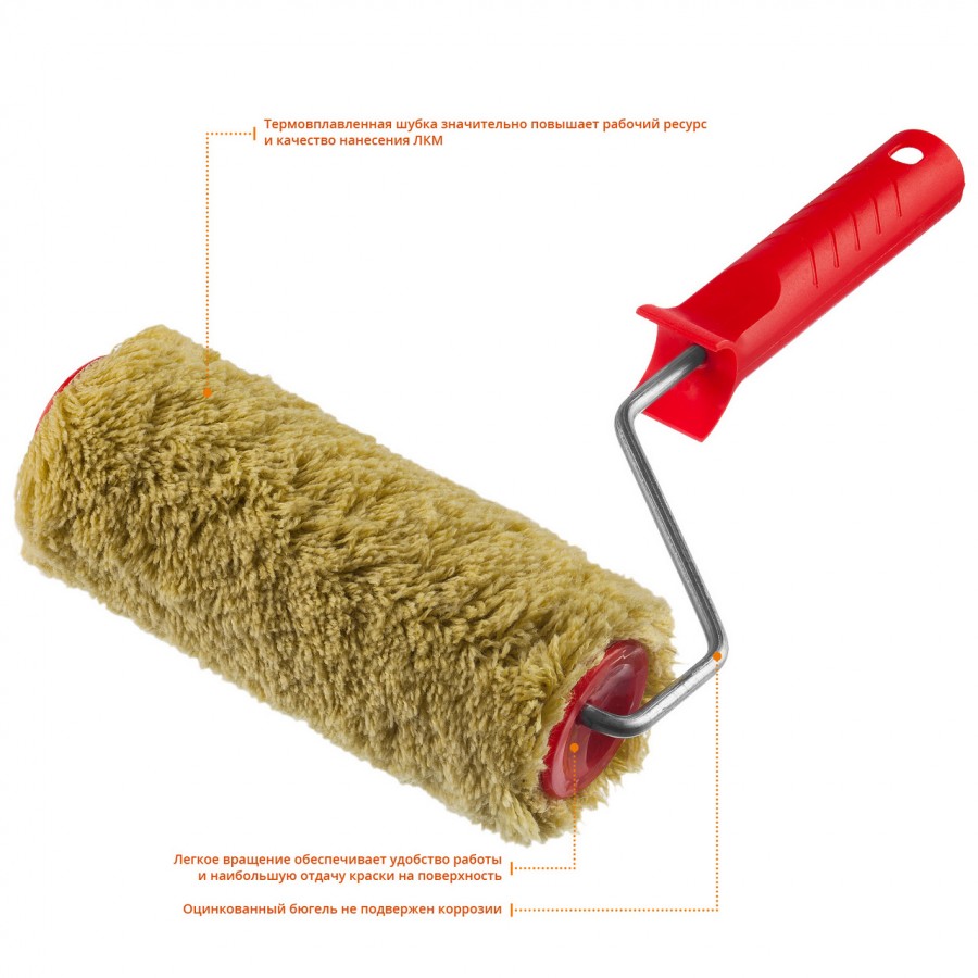 Валик малярный MIRAX 03715-18, обеспечивает равномерное и без разбрызгивания распределение лакокрасочных материалов по обрабатываемой поверхности.
