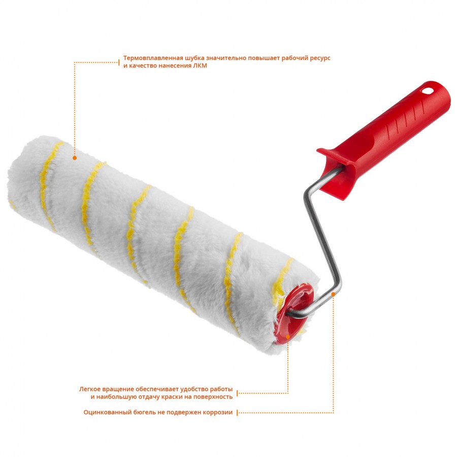 Валик малярный MIRAX 03716-24, обеспечивает равномерное и без разбрызгивания распределение лакокрасочных материалов по обрабатываемой поверхности.