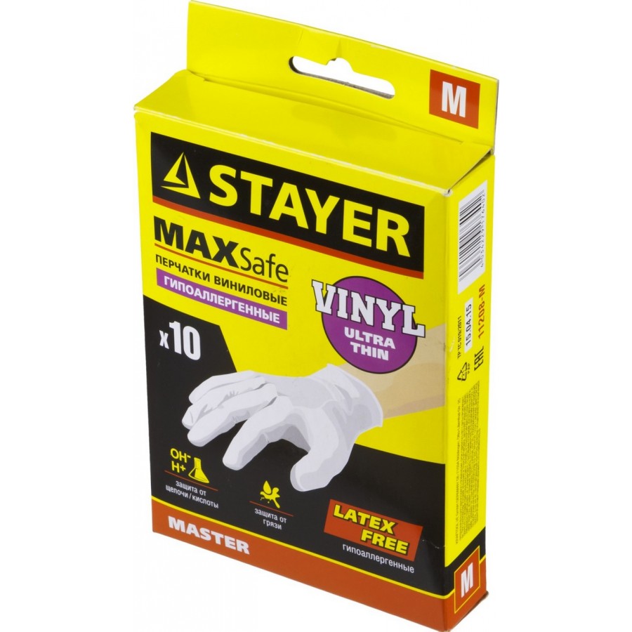 11208-M | Перчатки виниловые экстратонкие, M, 10шт, STAYER MASTER