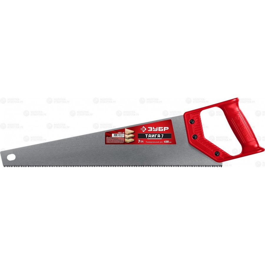 15081-45 | Ножовка универсальная (пила) 450мм,7TPI, закаленный зуб, рез вдоль и поперек волокон, для средних заготовок, фанеры, ДСП, МДФ, ЗУБР ТАЙГА-7