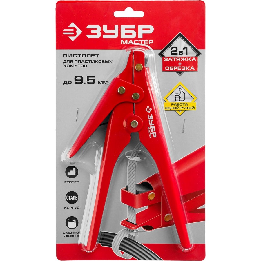 - Пистолет ЗУБР "МАСТЕР" 2в1 для затяжки и обрезки пластиковых кабельных хомутов шириной 2,3-9,5 мм. Конструкция изделия позволяет работать одной рукой. Стальной корпус многократно увеличивает рабочий ресурс изделия. Сменное лезвие, при необходимости может быть заточено.