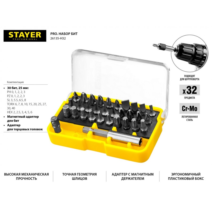 26135-H32 | Набор: Биты Cr-Mo, в компактном боксе, 32 предмета, STAYER PROFI