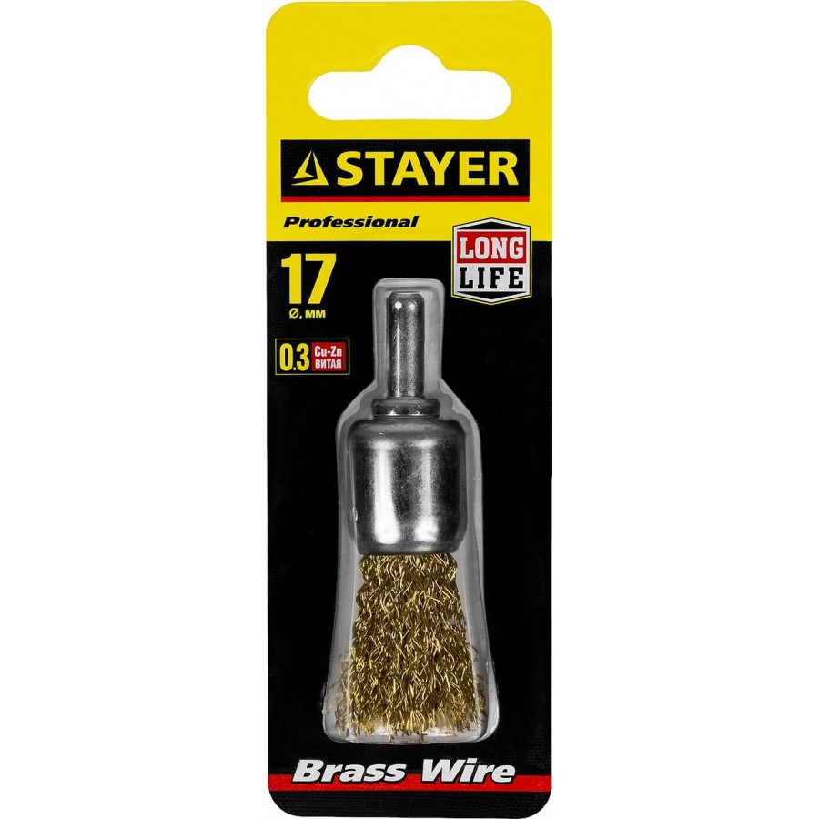 35113-17 | Щетка кистевая для дрели, витая стальная латунированная проволока 0,3мм, 17мм, STAYER MAXCLEAN