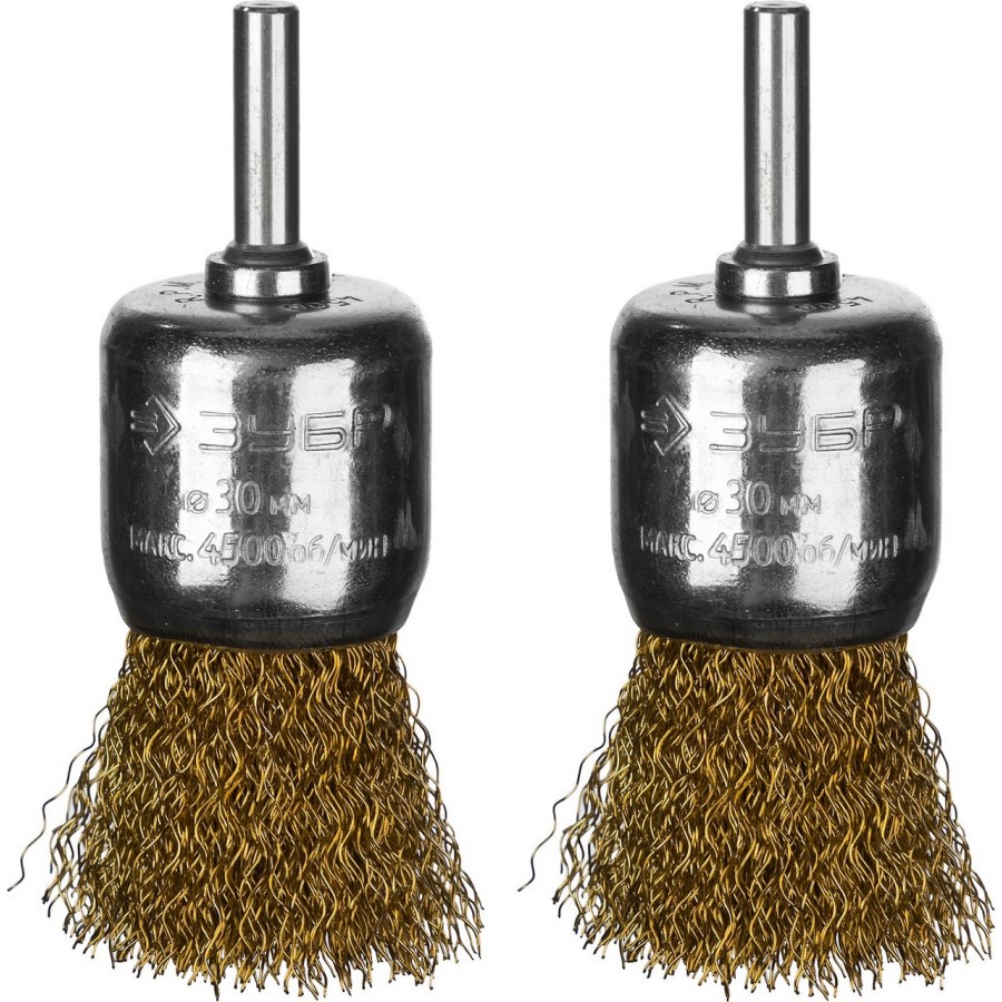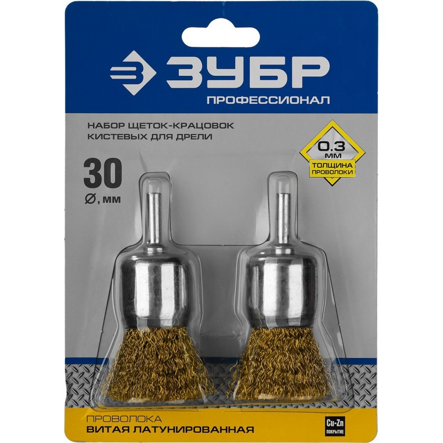 35225-30-H2_z02 | Набор щеток кистевых для дрели, витая стальная латунированная проволока 0,3мм, 30мм, 2шт, ЗУБР ПРОФЕССИОНАЛ
