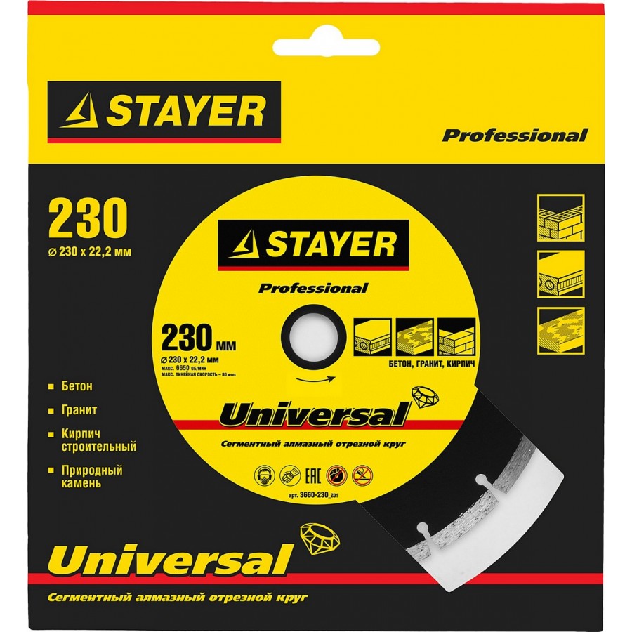 3660-230_z01 | 230 мм, диск алмазный отрезной по бетону, кирпичу, плитке, STAYER UNIVERSAL-PROFESSIONAL