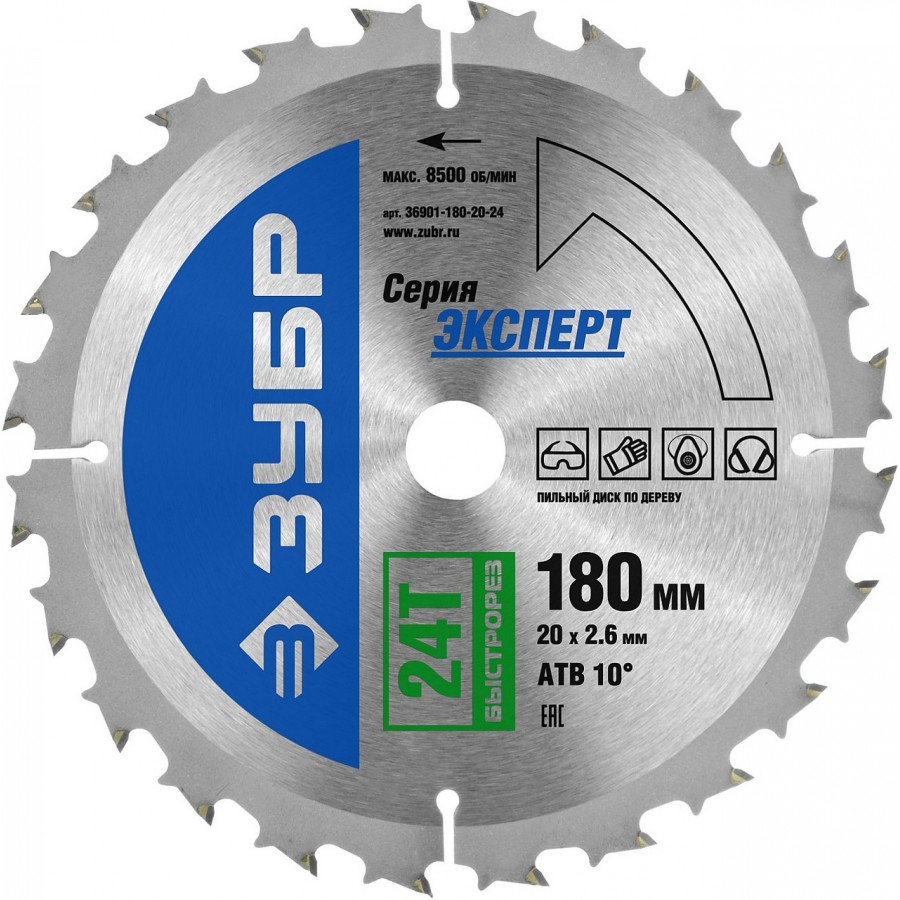36901-180-20-24 | 180 x 20 мм 24Т, диск пильный по дереву, быстрорез, ЗУБР ПРОФЕССИОНАЛ