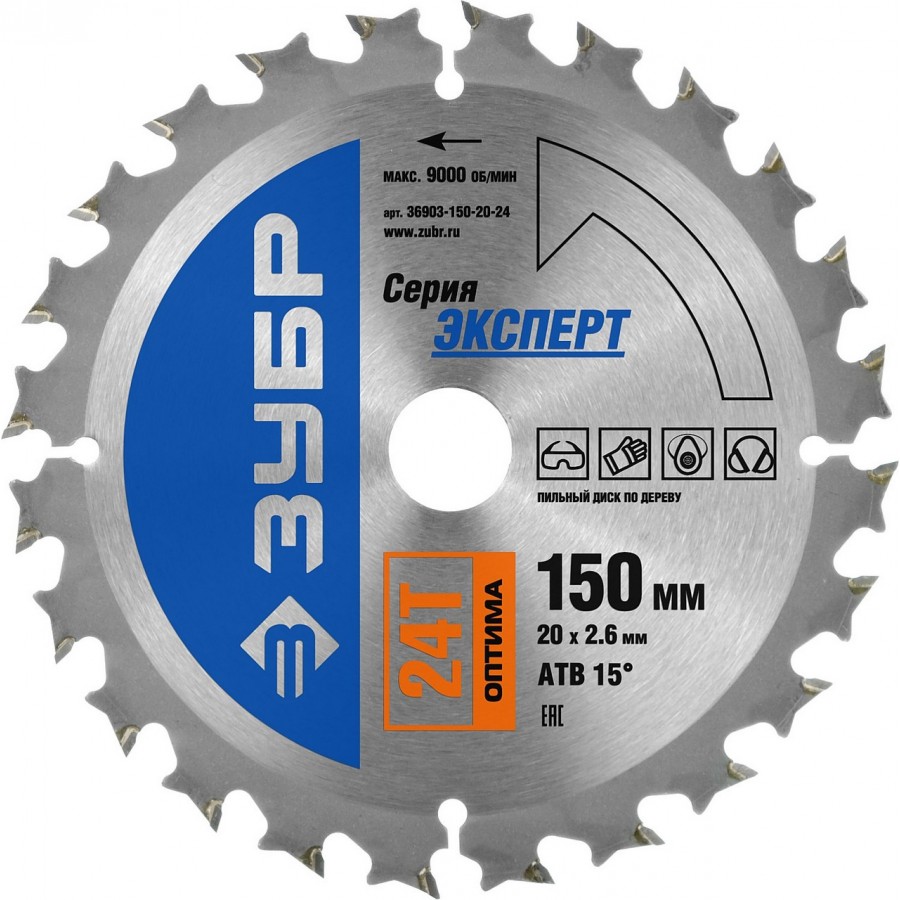 Диск пильный по дереву ЗУБР 36903-150-20-24, предназначен как для быстрых и точных угловых резов, так и для выполнения грубых черновых резов. Оптима - универсальный пильный диск, для быстрого распила всех типов древесины. Применяется для распила твердых и мягких пород дерева, клеевых плит, древесно-стружечных плит и МДФ( в том числе облицованных натуральным шпоном, меланиновой пленкой. бумагой. пластиком и др.)фанеры и облицованной фанеры. Твердосплавные резцы марки ВК8С. Автоматизированная высококачественная пайка для надежного крепления зубьев. Автоматическая трехсторонняя шлифовка зубьев для максимально точной геометрии режущих элементов и чистого реза.- Компьютерная балансировка диска для предотвращения биений при работе. Компенсационные прорези исключают внутреннее напряжение и деформацию диска, возникающую при его перегреве во время эксплуатации.