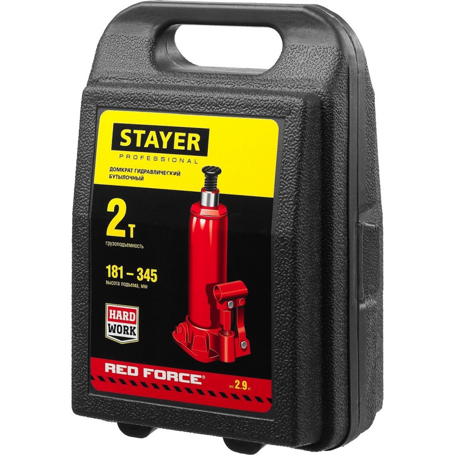43160-2-K_z01 | Домкрат гидравлический бутылочный, 2т, 181-345 мм, в кейсе, STAYER RED FORCE