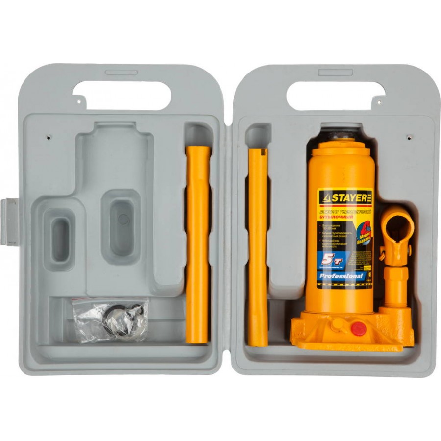 43160-5-K | Домкрат гидравлический бутылочный, в кейсе, 5т, 195-380мм, STAYER PROFI