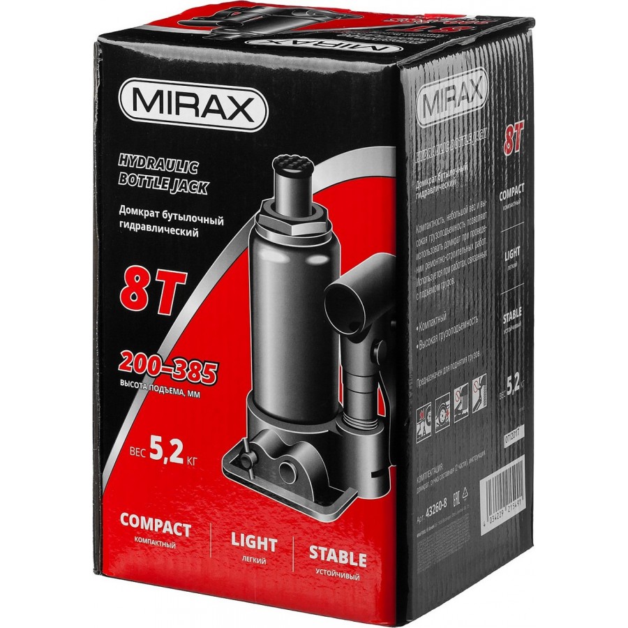 43260-8 | Домкрат гидравлический бутылочный, 8т, 200-385 мм, MIRAX