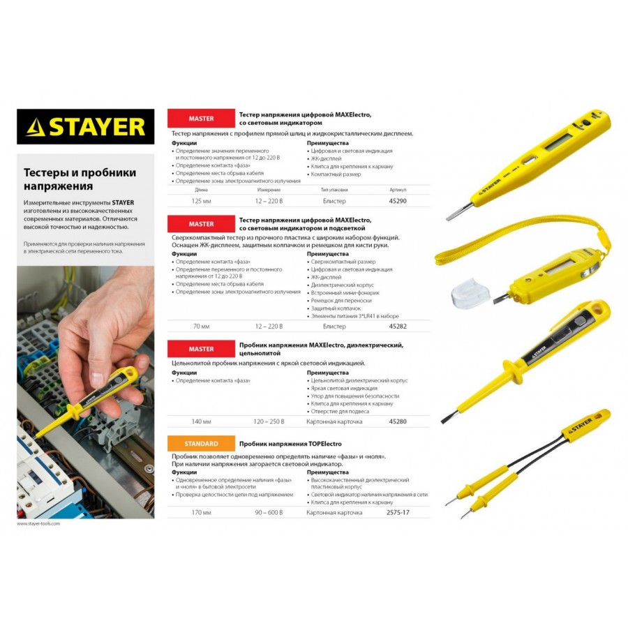 45280 | Пробник напряжения с цельнолитым диэлектрическим корпусом, 120-250В, 150мм, STAYER MASTER