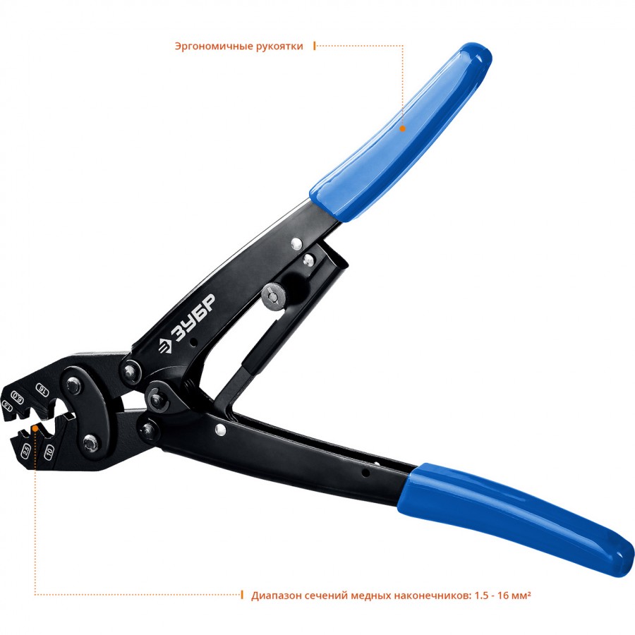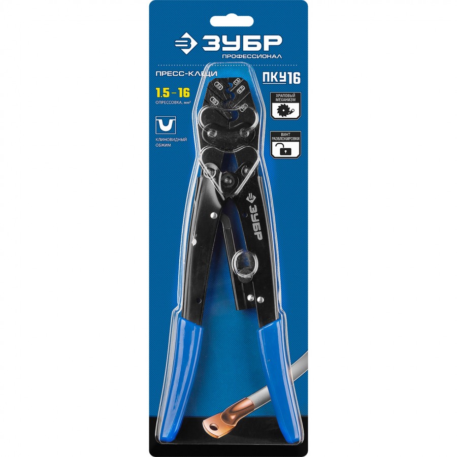 45458 | ПКУ-16 пресс-клещи усиленные для медных наконечников и гильз 1,5 - 16 мм.кв, ЗУБР ПРОФЕССИОНАЛ