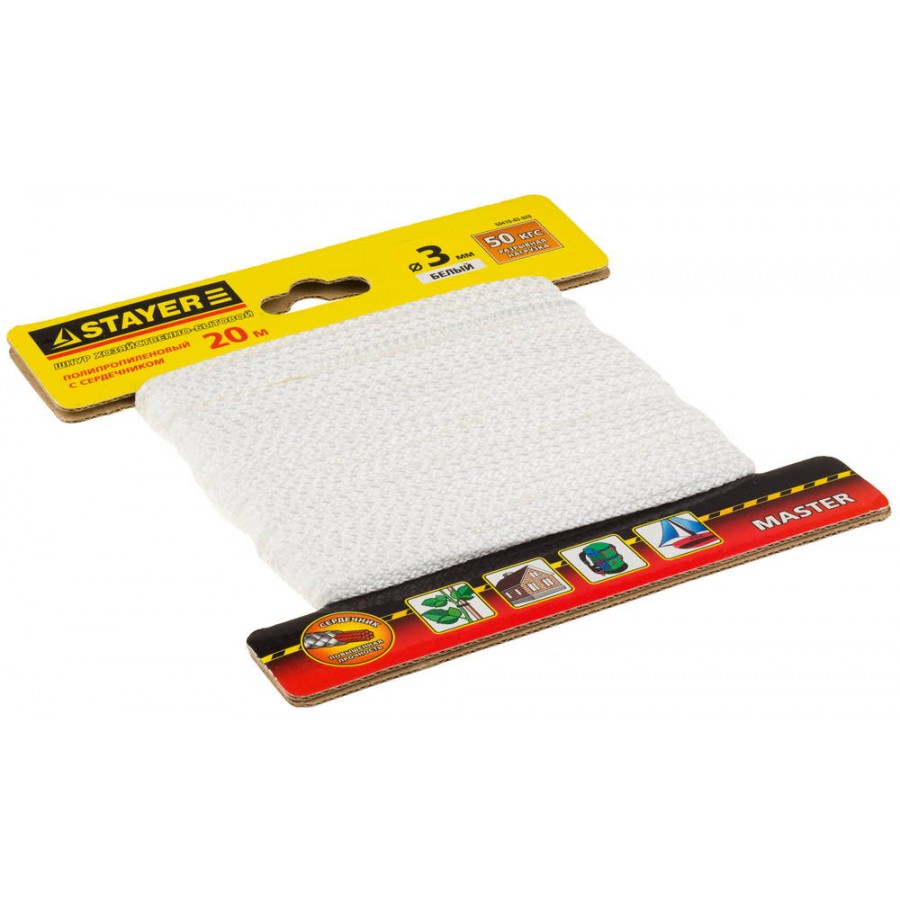 50410-03-020 | Шнур хозяйственно-бытовой, полипропиленовый, вязанный, с сердечником, белый, d 3, 20м, STAYER MASTER