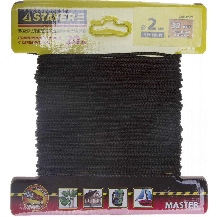 50411-02-020 | Шнур хозяйственно-бытовой, полипропиленовый, вязанный, с сердечником, черный, d 2, 20м, STAYER MASTER