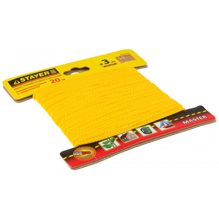 50414-03-020 | Шнур хозяйственно-бытовой, полипропиленовый, вязанный, с сердечником, желтый, d 3, 20м, STAYER MASTER