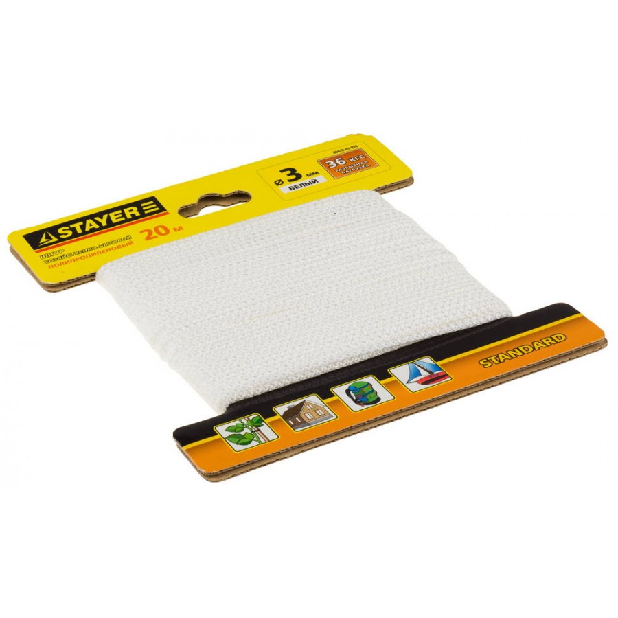 50420-03-020 | Шнур хозяйственно-бытовой, полипропиленовый, вязанный, без сердечника, белый, d 3, 20м, STAYER STANDARD