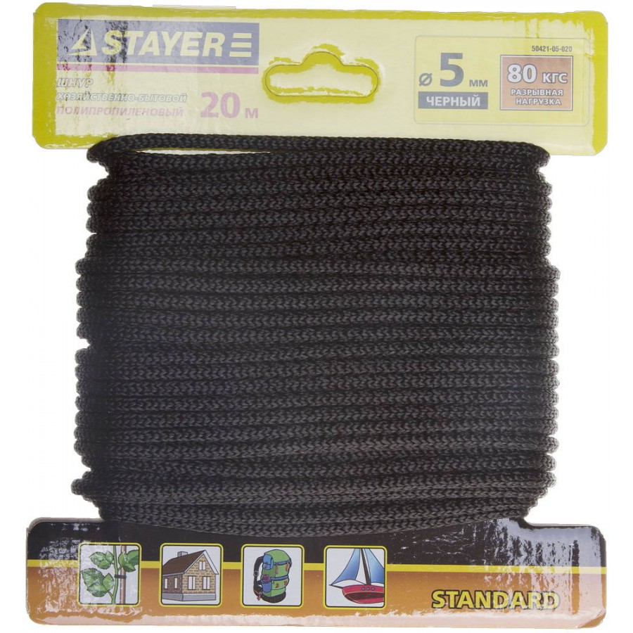 50421-05-020 | Шнур хозяйственно-бытовой, полипропиленовый, вязанный, без сердечника, черный, d 5, 20м, STAYER STANDARD