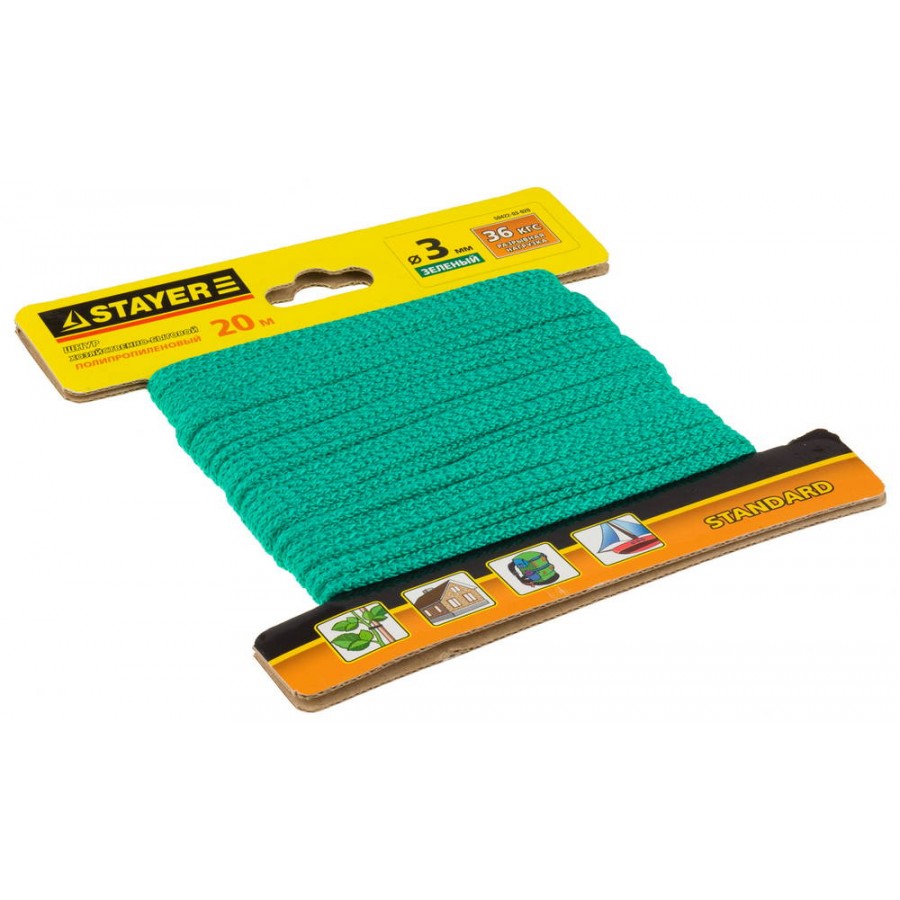50422-03-020 | Шнур хозяйственно-бытовой, полипропиленовый, вязанный, без сердечника, зеленый, d 3, 20м, STAYER STANDARD