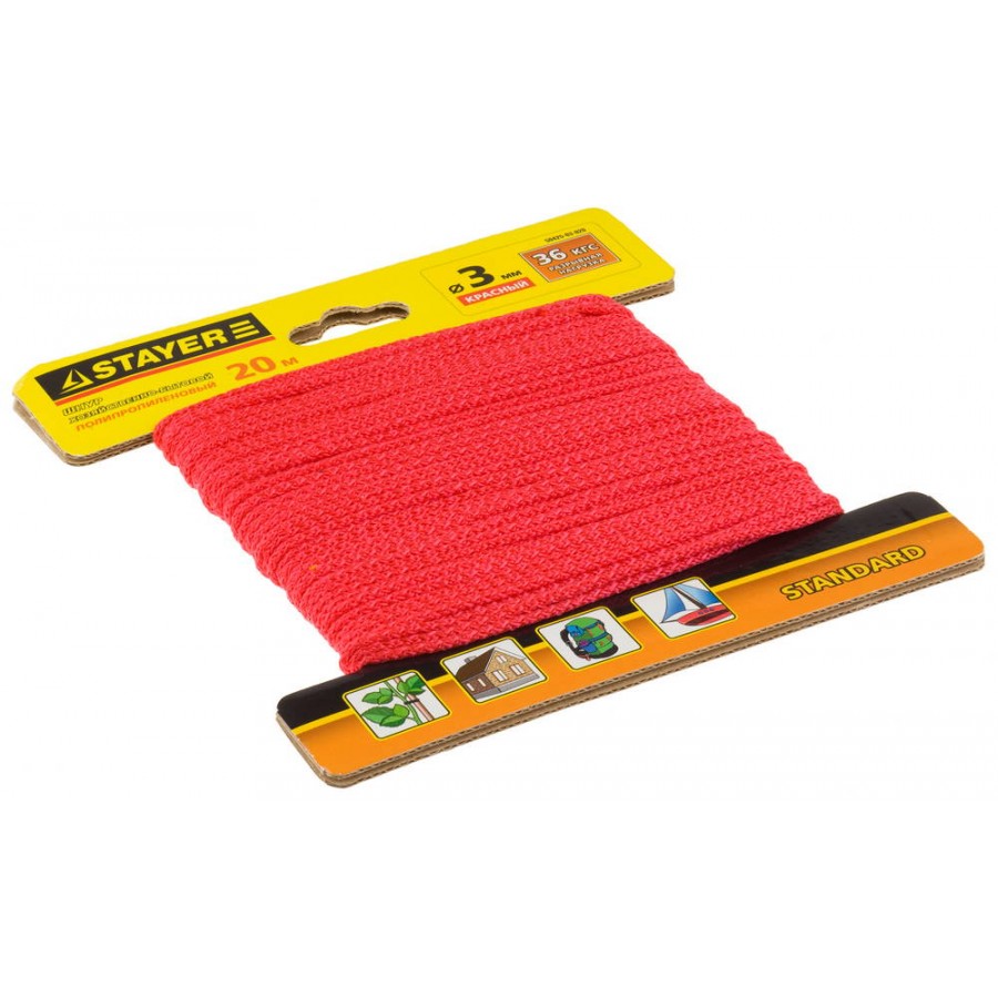 50425-03-020 | Шнур хозяйственно-бытовой, полипропиленовый, вязанный, без сердечника, красный, d 3, 20м, STAYER STANDARD