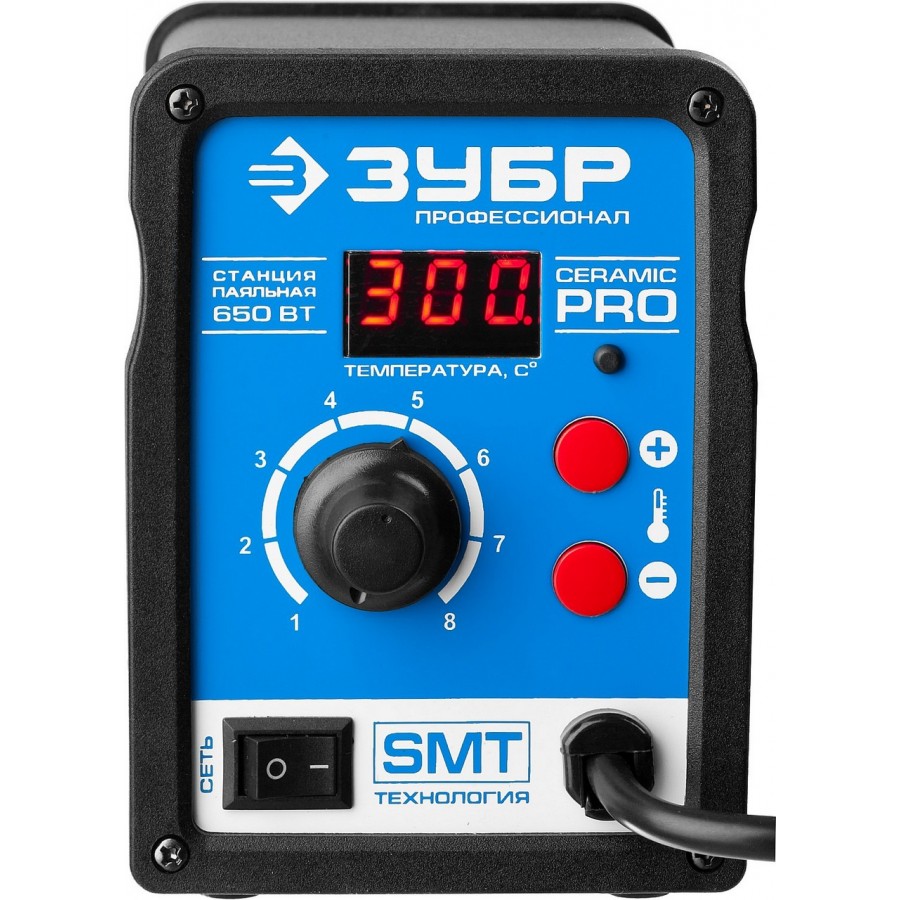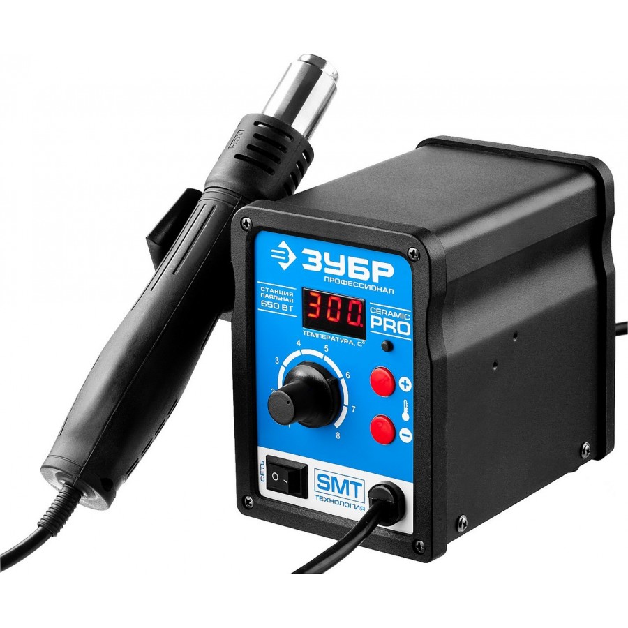 | Тип | Паяльная станция термовоздушная ЗУБР цифровая с ЖК дисплеем, керамический нагреватель, диапазон 100-500°C, 650Вт, 220В |