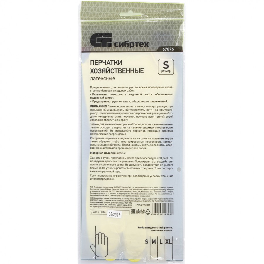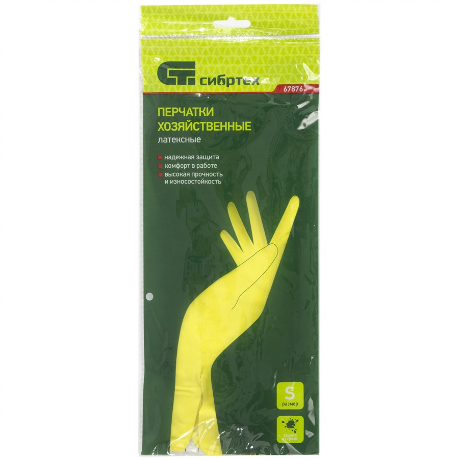 67876 | Перчатки хозяйственные, латексные, S, СИБРТЕХ
