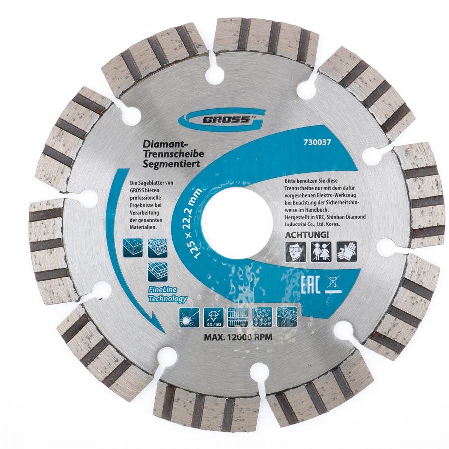 730037 | Диск алмазный, 125 х 22,2 мм, лазерная приварка турбо-сегментов, сухая резка, GROSS