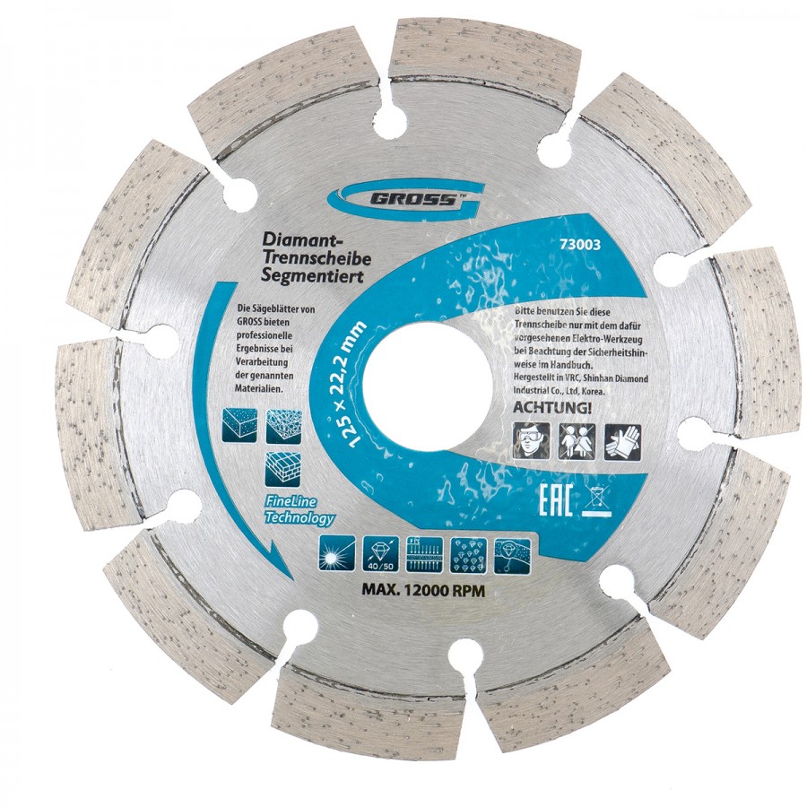 - Алмазный диск размером 230 х 22,2 мм торговой марки GROSS предназначен для резки «сухим методом» (без использования охлаждающей жидкости) изделий из твердых материалов: бетона, мрамора, шлакоблоков и гранита.