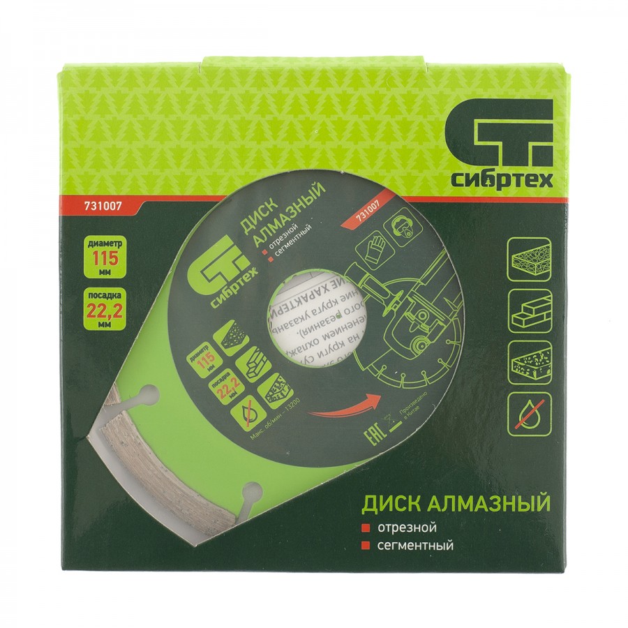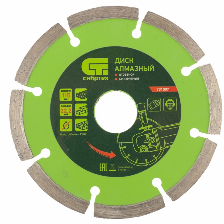 731007 | Диск алмазный, отрезной сегментный, 115 х 22,2 мм, сухая резка, СИБРТЕХ