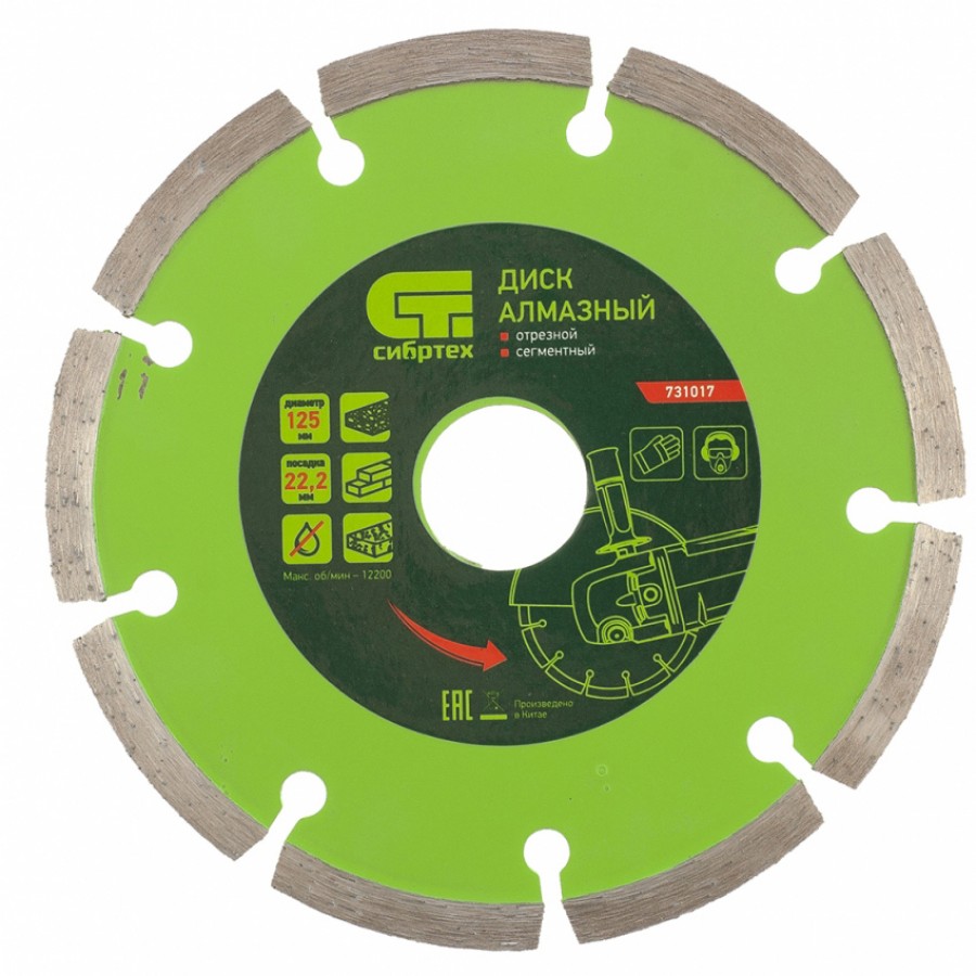 731017 | Диск алмазный, отрезной сегментный, 125 х 22,2 мм, сухая резка, СИБРТЕХ