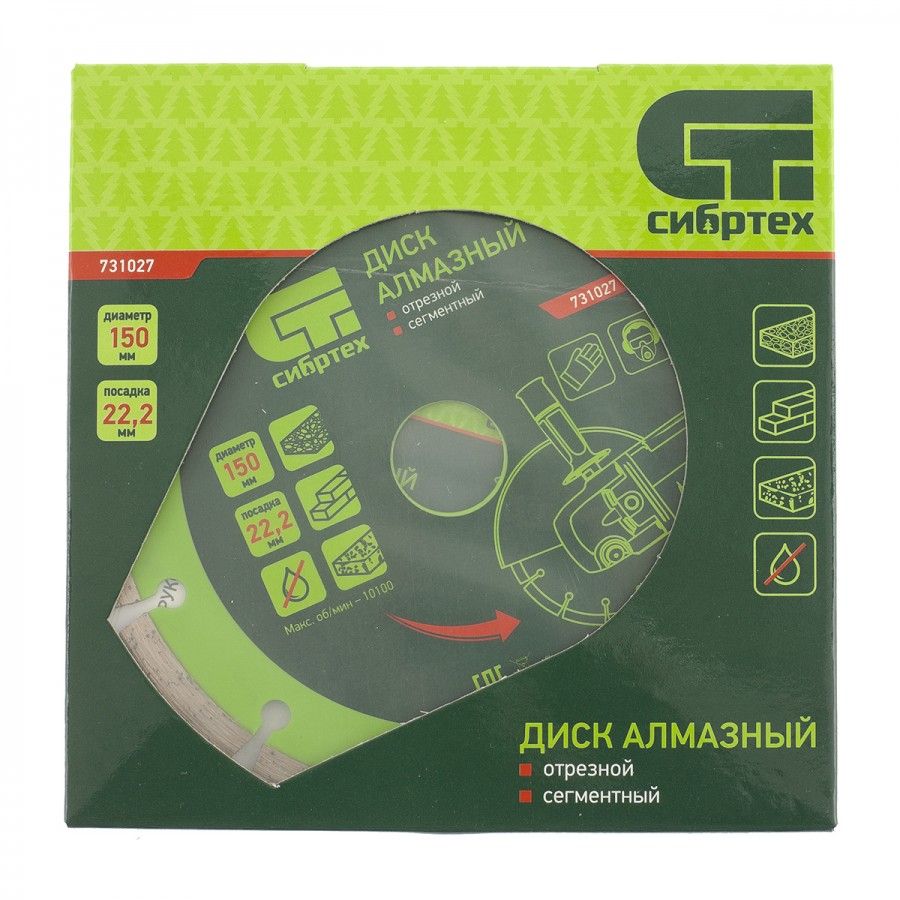 731027 | Диск алмазный, отрезной сегментный, 150 х 22,2 мм, сухая резка, СИБРТЕХ