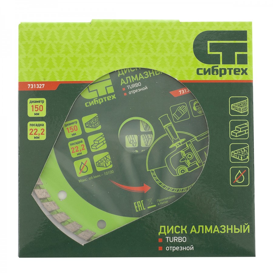 731327 | Диск алмазный, отрезной Turbo, 150 х 22,2 мм, сухая резка, СИБРТЕХ