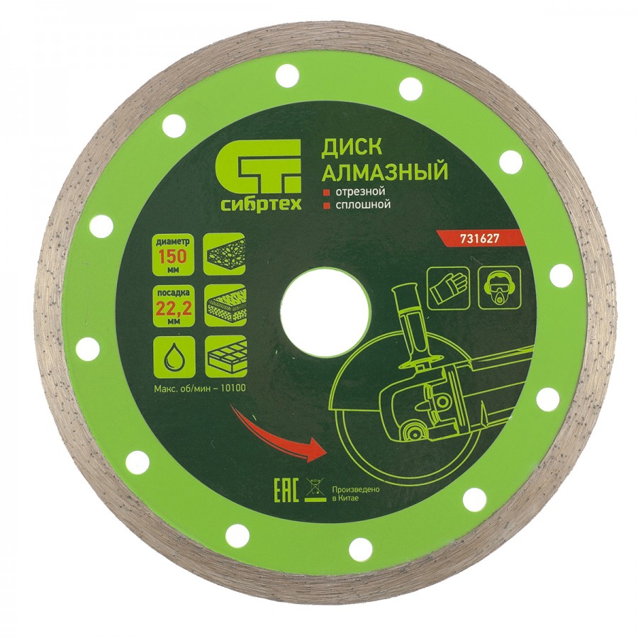 731627 | Диск алмазный, отрезной сплошной, 150 х 22,2 мм, мокрая резка, СИБРТЕХ