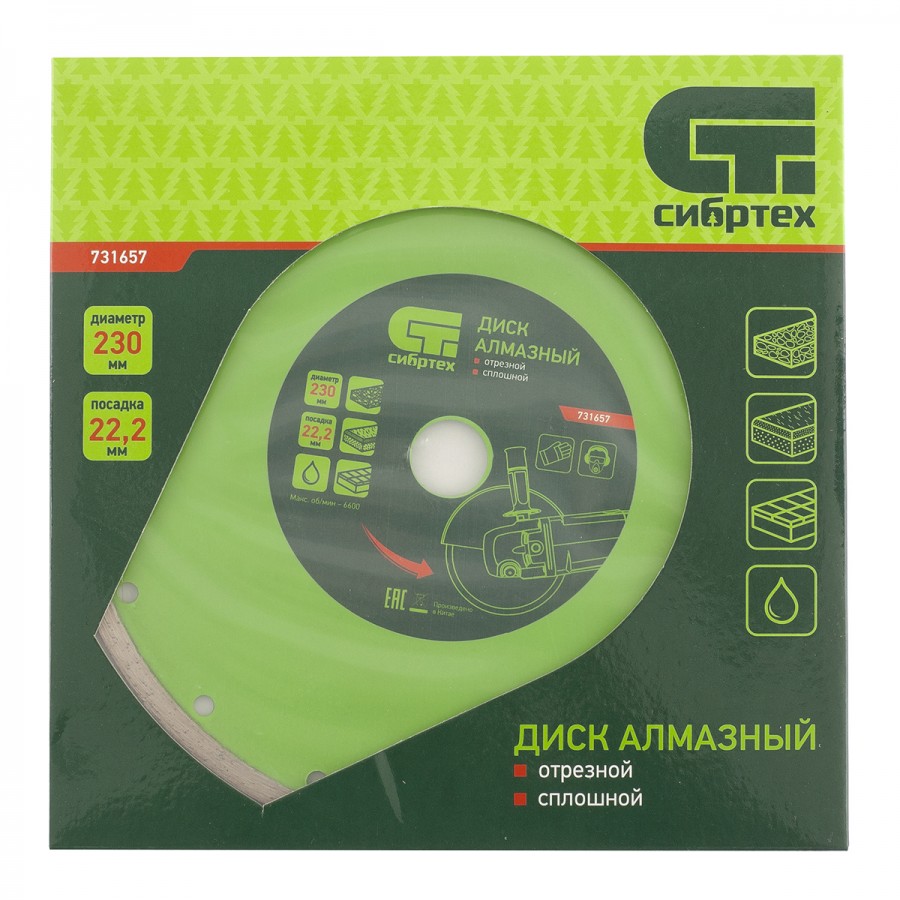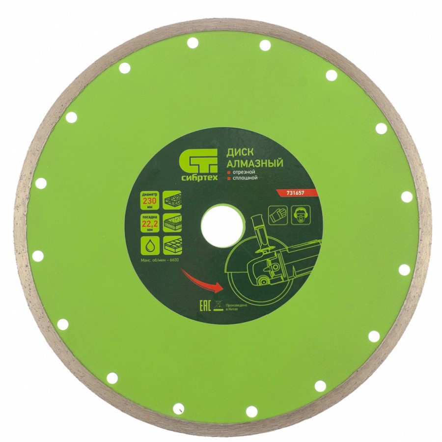 731657 | Диск алмазный, отрезной сплошной, 230 х 22,2 мм, мокрая резка, СИБРТЕХ