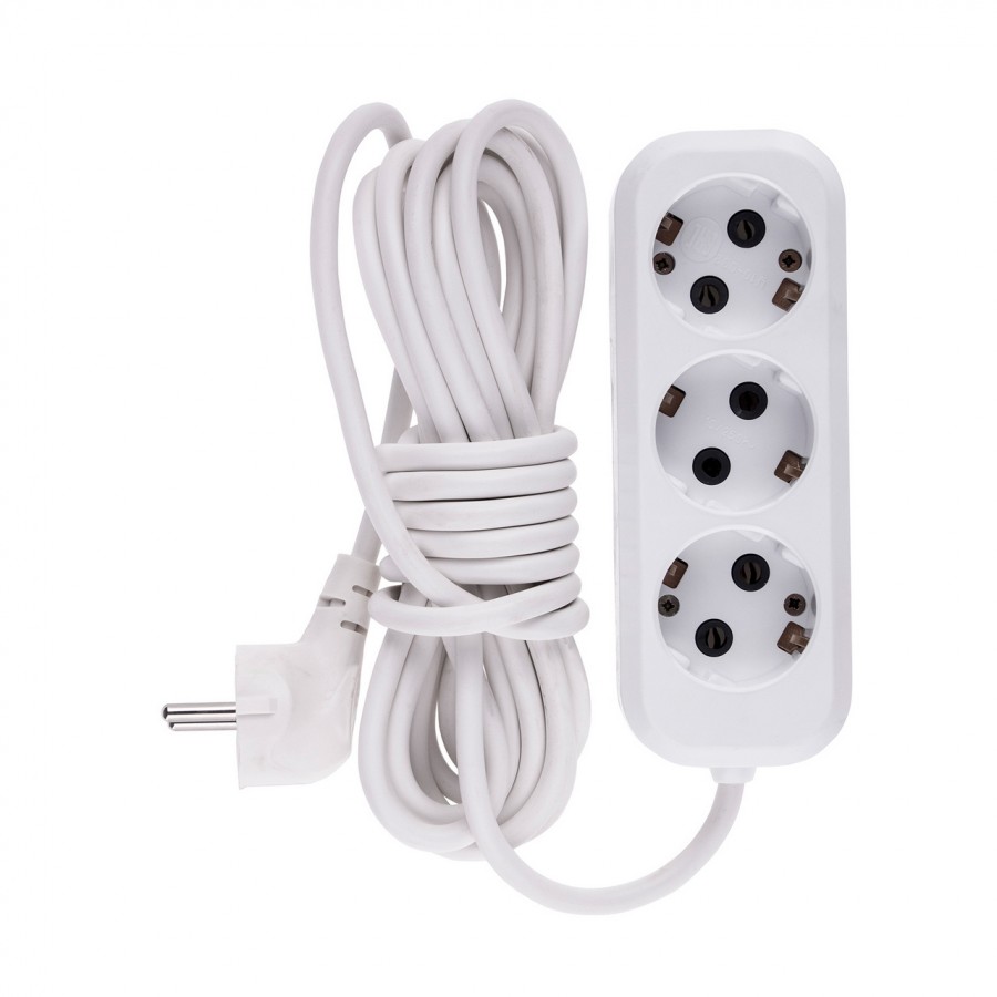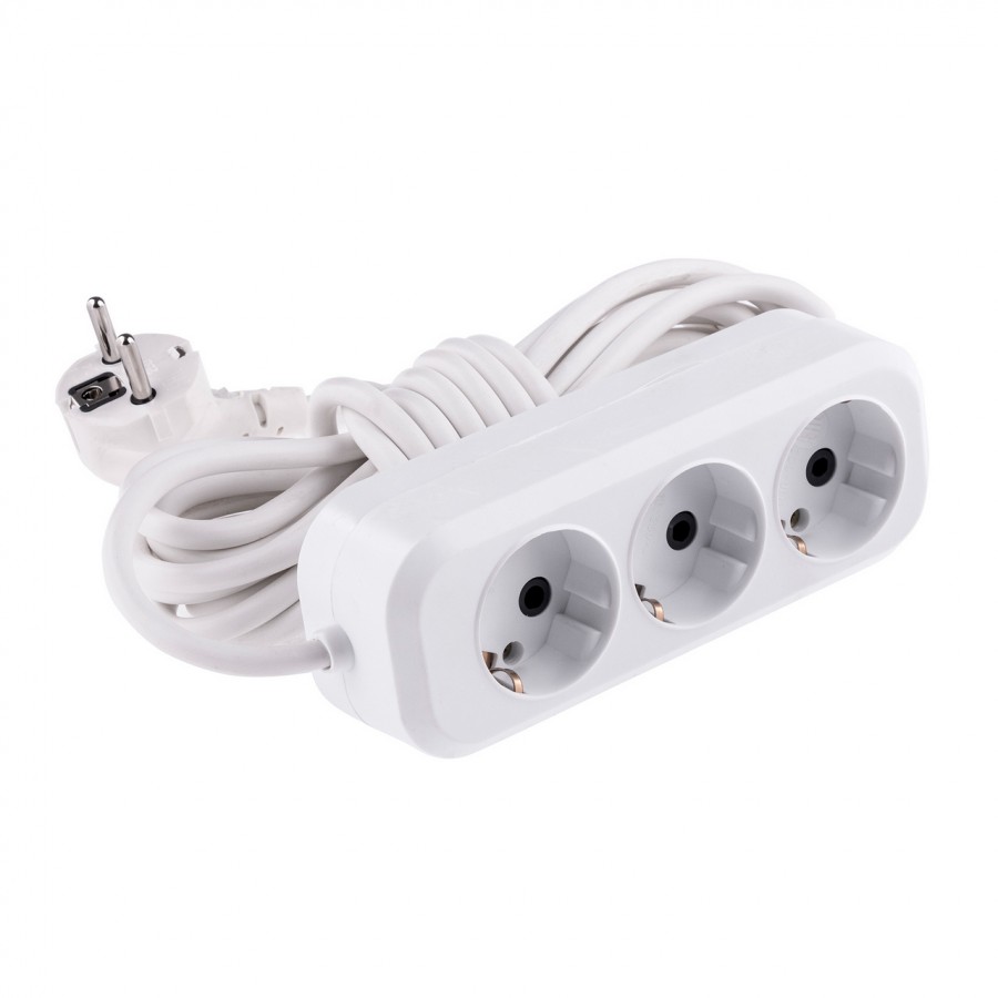 - Корпус удлинителя изготовлен из белого пластика, устойчивого к механическому воздействию и износу.