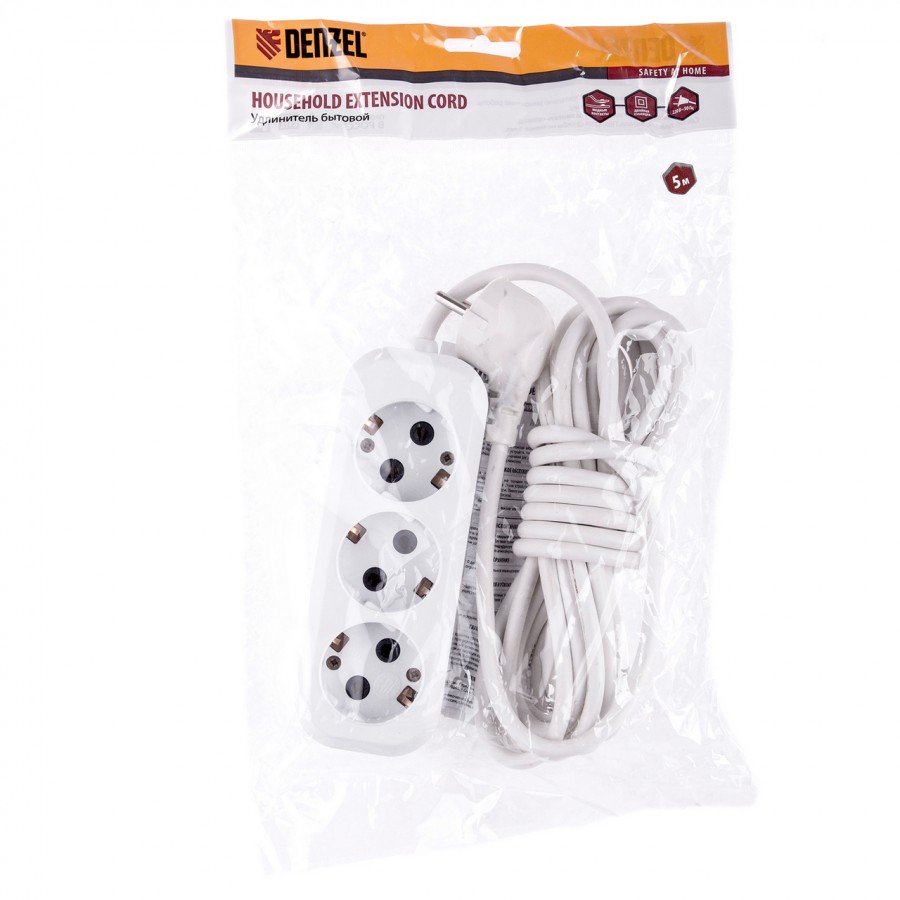 95967 | Удлинитель бытовой, серия УХз-10-305, с заземлением, 5 м, 3 розетки, 10 A, DENZEL